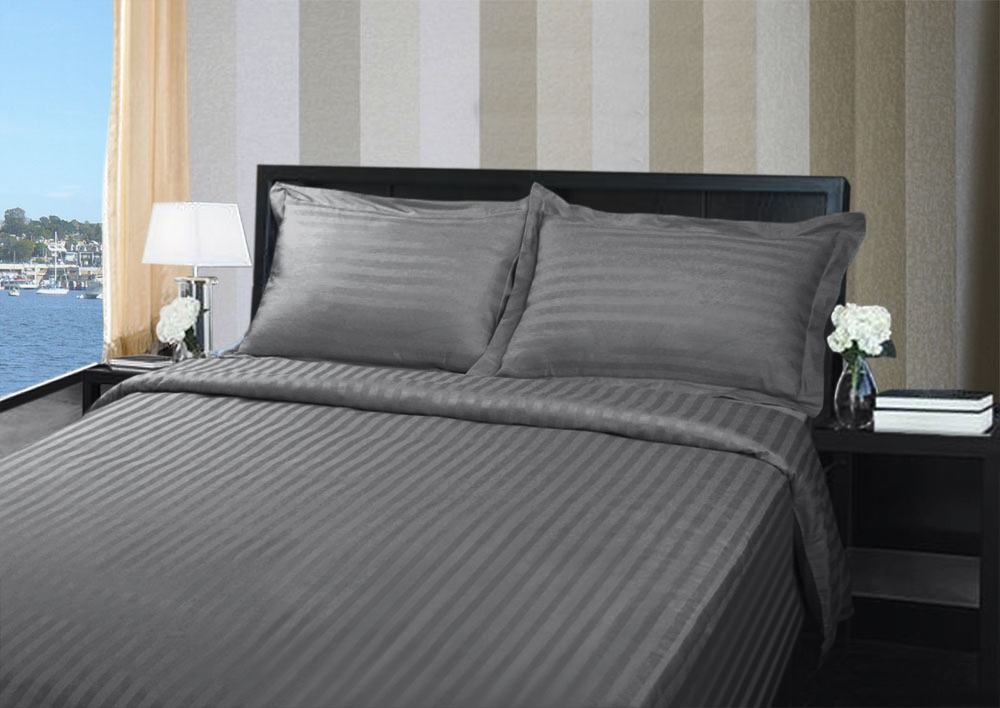 Cotton Sateen Quilt Cover Set. 375 Thread Count, Hotel Quality. Contains Quilt cover & 2 pillow cases (tailored). Stripe Damask Finish